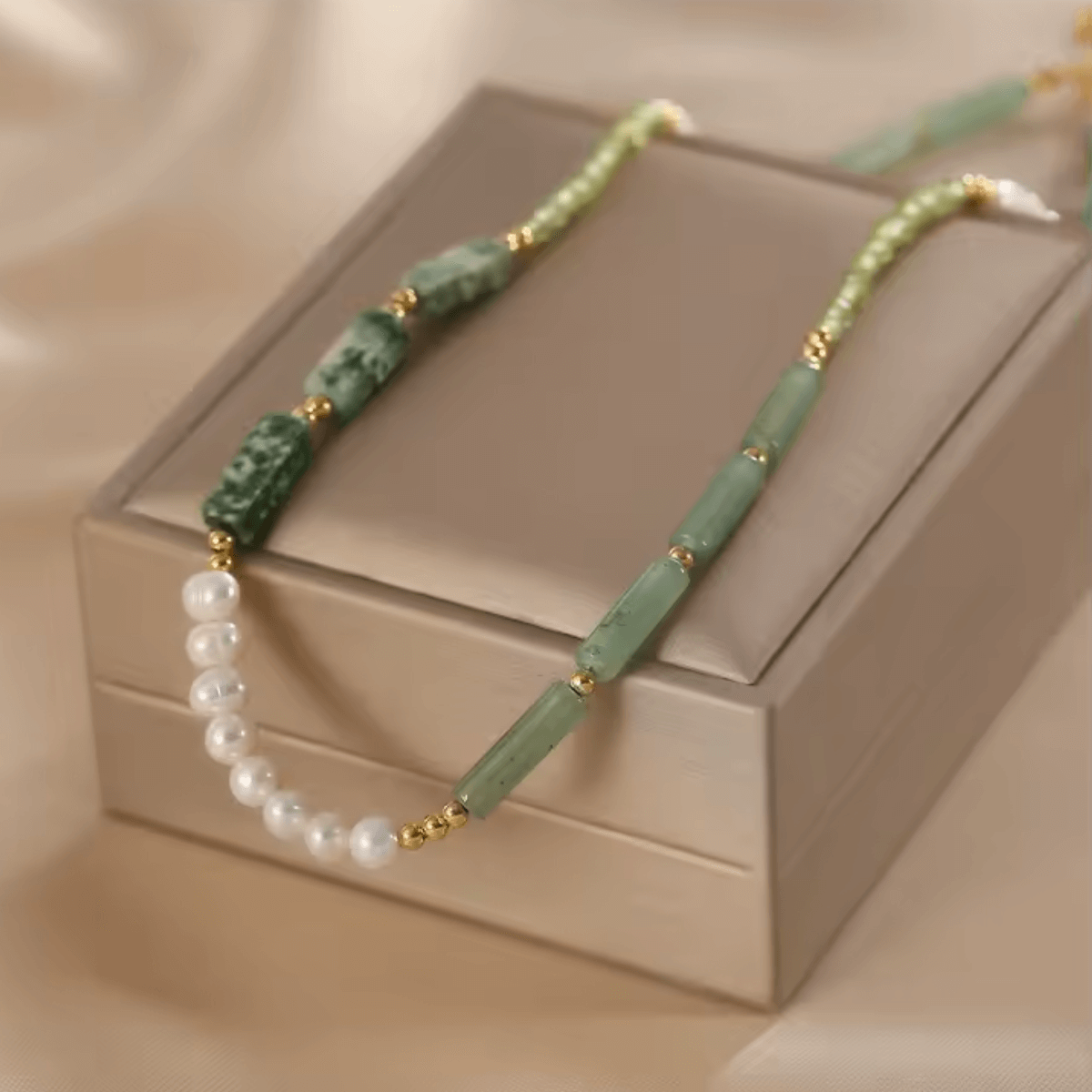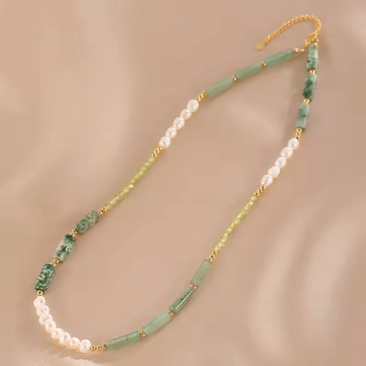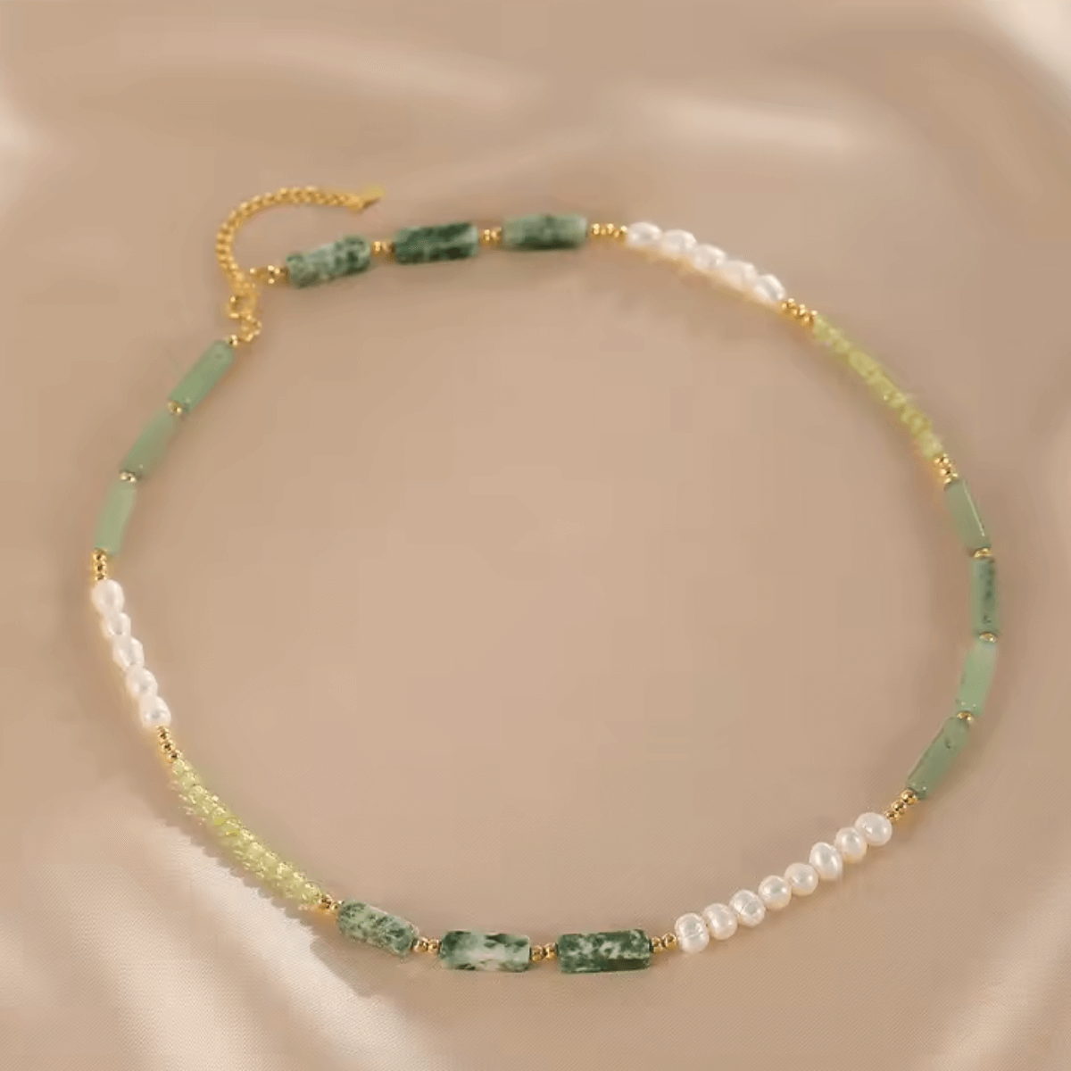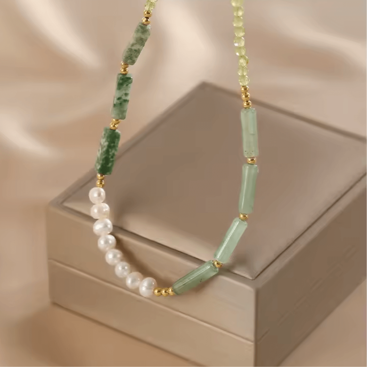 Colar Harmony em Quartzo Verde, Epidoto e Pérolas de Água Doce